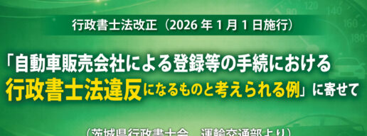 『「自動車販売会社による登録等の手続における行政書士法違反になるものと考えられる例」に寄せて』(茨城県行政書士会運輸交通部より)