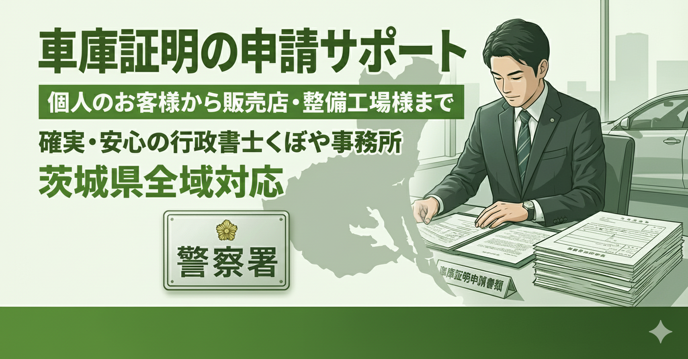 書類作成から警察署への提出・受領まで、茨城県西・県南エリアに対応します。