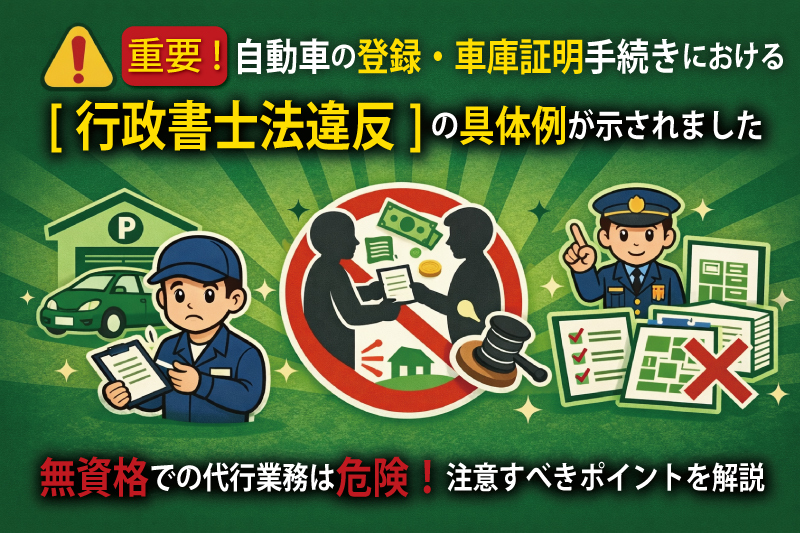 【令和7年行政書士法改正】自動車の登録・車庫証明手続きにおける「行政書士法違反」の具体例が示されました